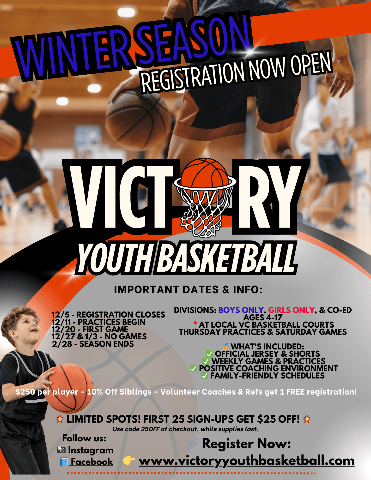 Through engaging practices, innovative game formats, and a focus on fun, we ensure that every player not only develops basketball skills but also gains valuable life lessons in leadership, perseverance, and integrity. At Victory Youth Basketball, we believe the game is more than just basketball—it’s a foundation for building confident, capable individuals who carry those values far beyond the court.